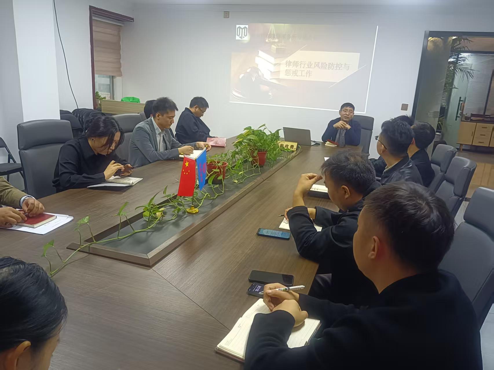 2025年10月9日,河南铭树律师事务所任彦群主任,组织全体律师在律所会议室召开律师行业风险防控与惩戒工作